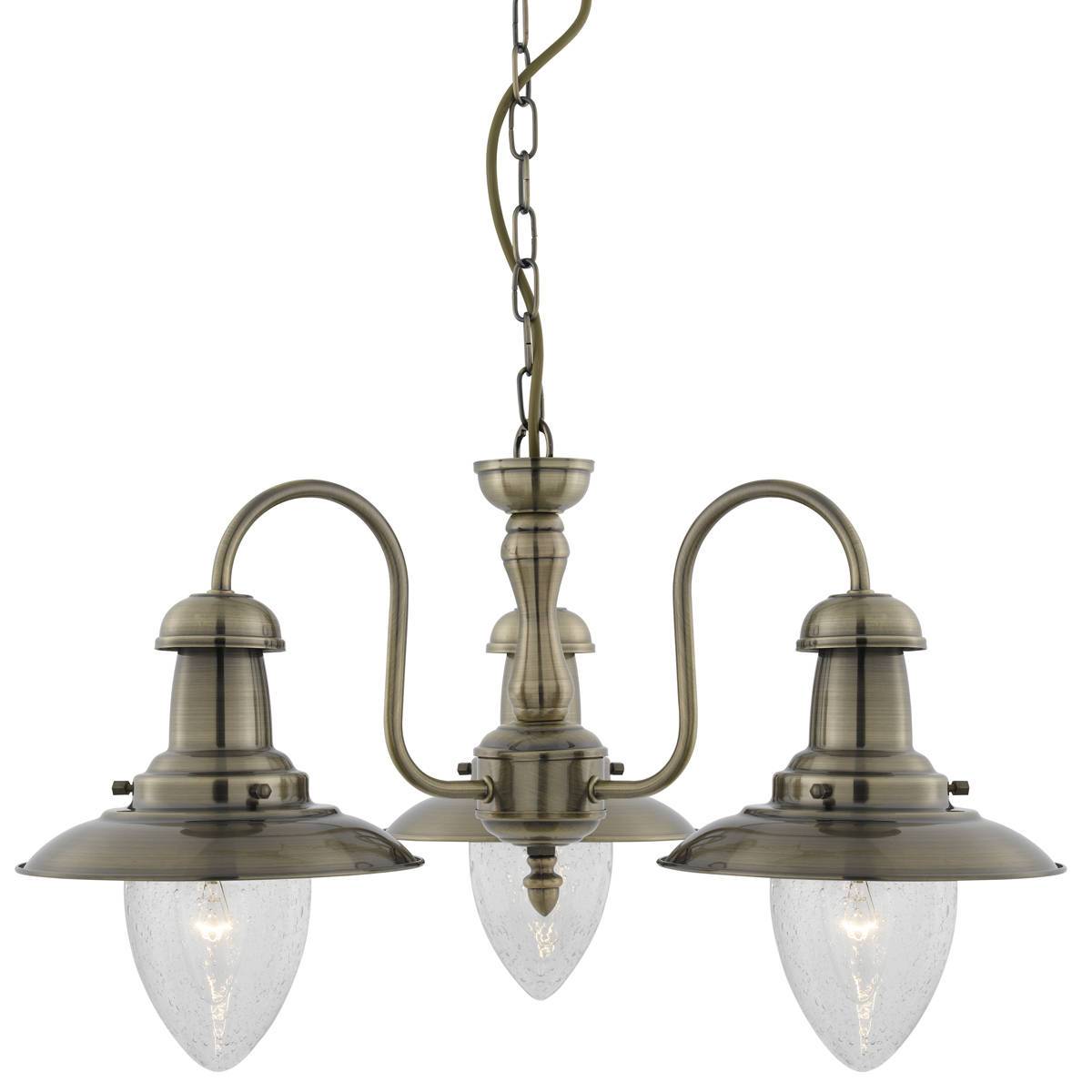 Searchlight Fisherman Stropna svetilka s 3 lučmi in več kraki, antična medenina, zrnato steklo, E27