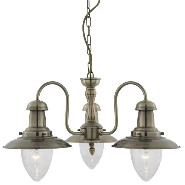 Searchlight Fisherman Stropna svetilka s 3 lučmi in več kraki, antična medenina, zrnato steklo, E27