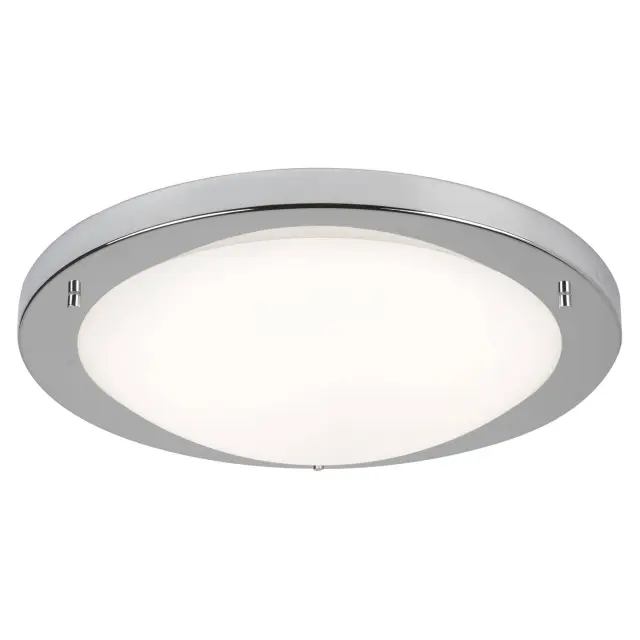 Searchlight Flush Velika okrogla LED stropna svetilka za kopalnico, satenasto srebrna, bela, IP44