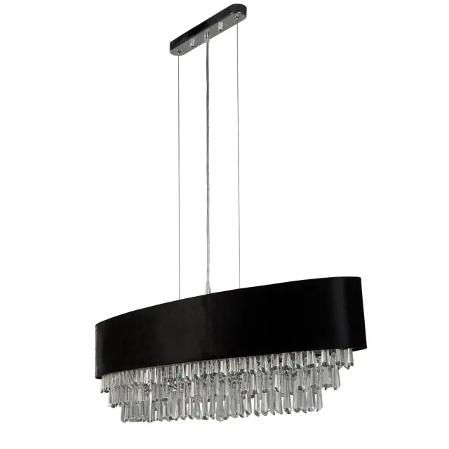 Searchlight Glamour 8-svetli ovalni obesek iz črnega žameta, prozoren kristal