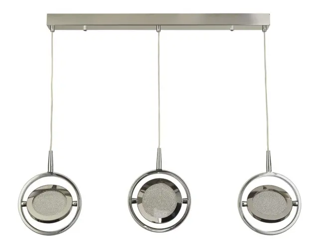Searchlight Gyroscope 3-lučna LED viseča svetilka s prstani, kromirana, kristalno peščena 3000K