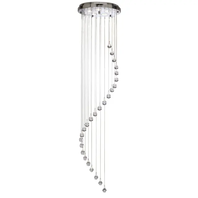 Searchlight Hallway Viseča svetilka s 5 spiralnimi grozdi, kromirana, s kristali, GU10