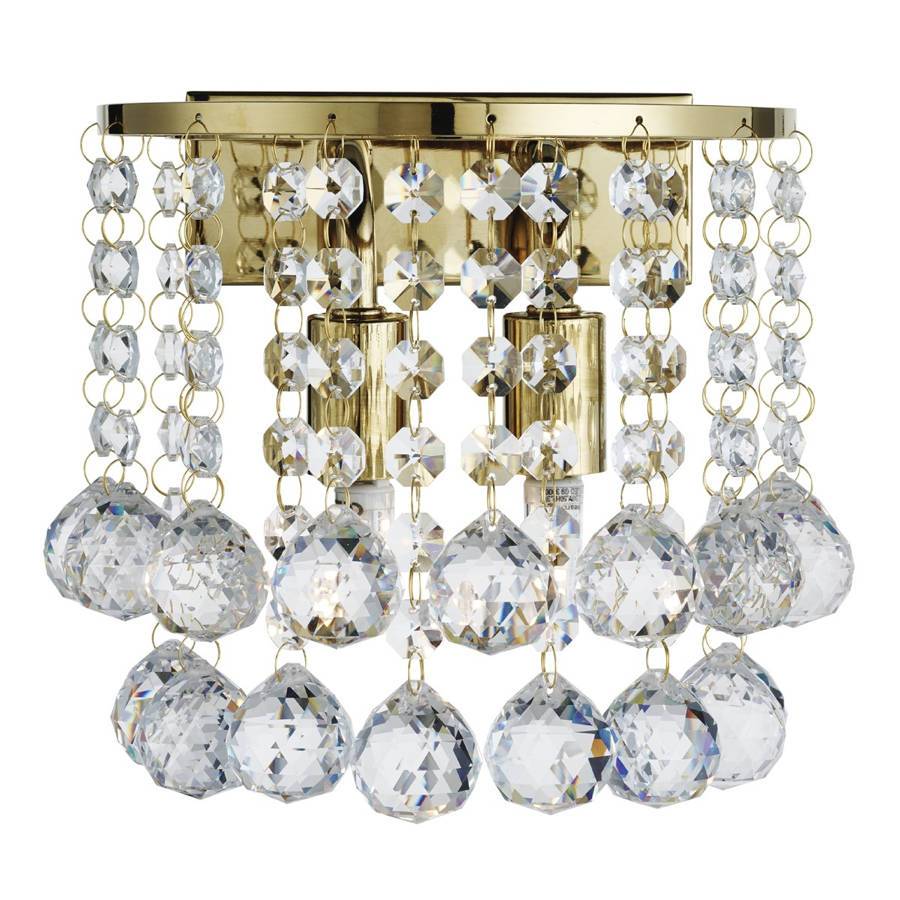 Searchlight Hanna Notranja stenska svetilka z 2 lučema, zlata s kristali, G9