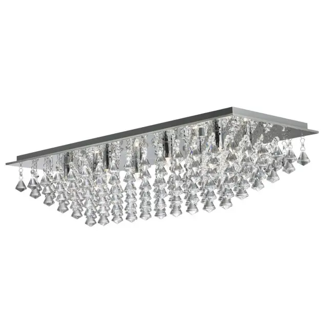 Searchlight Hanna Stropna svetilka s pravokotno 8-lučno kromirano površino s piramidnimi kristali, G9