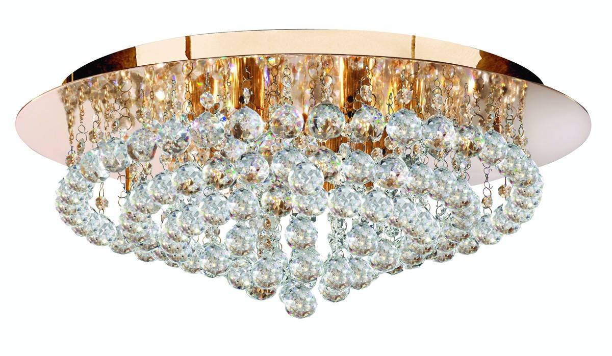 Searchlight Hanna Stropna svetilka z 8 lučmi, delno vgradna, zlata, s kristali, G9
