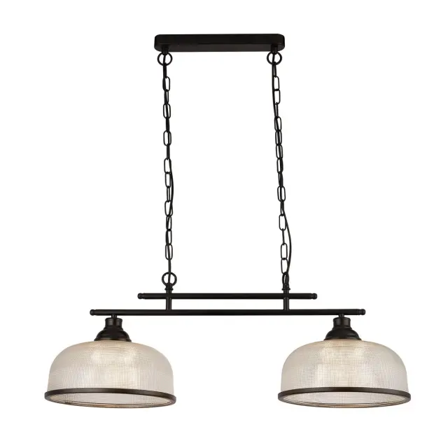 Searchlight Highworth 2 obesna svetilka črne barve, steklo v holofanskem slogu