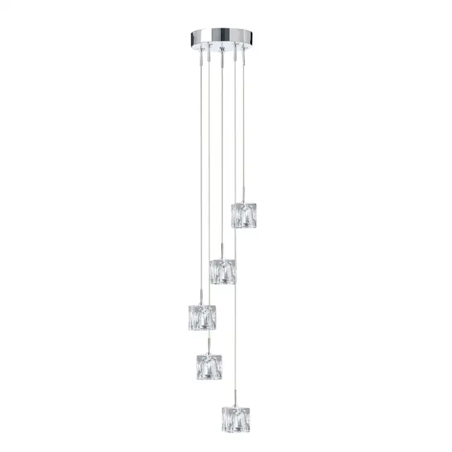 Searchlight Ice Cube LED viseča spiralna svetilka s 5 LED lučmi, kromirano steklo