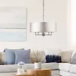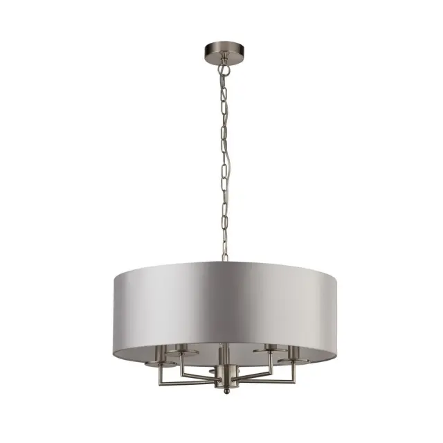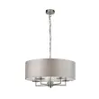 Searchlight Knightsbridge Stropna viseča svetilka s 5 satenastimi srebrnimi stebri in srebrnim senčnikom iz umetne svile