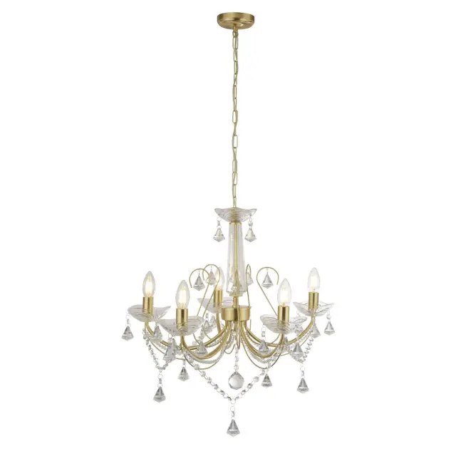 Searchlight Lafayette Lestenec s 5 lučmi, več krakov, zlat, prozoren kristal, E14