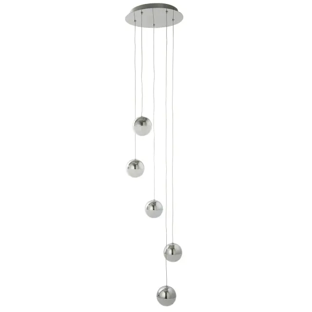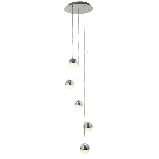 Searchlight Marbles Integrirana LED viseča svetilka s 5 spiralnimi lučmi, kromirana, zdrobljeno ledeno steklo
