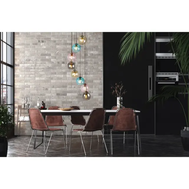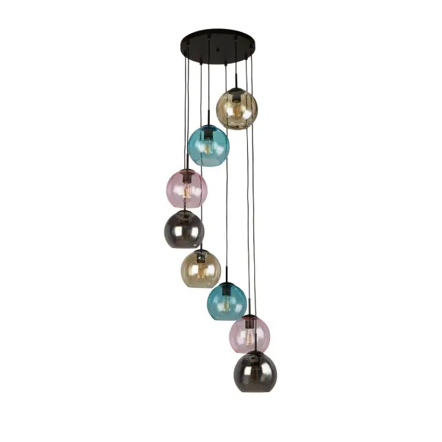 Searchlight Mardi Gras Ii 8-lučna viseča svetilka črne barve, barvno steklo