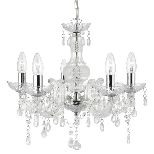 Searchlight Marie Therese Stropna viseča svetilka s 5 lučmi, prozorna, s kristali, E14