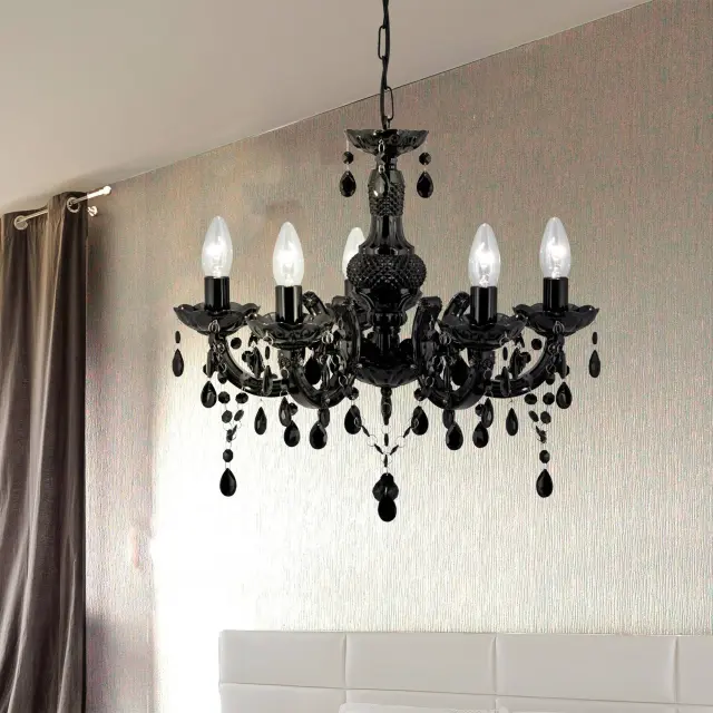 Searchlight Marie Therese Stropna svetilka s 5 lučmi in več kraki, črna s kristali, E14