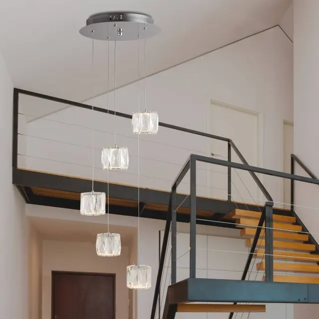 Searchlight Maxim LED viseča spiralna svetilka s 5 LED lučmi, kromirano steklo