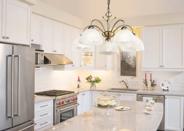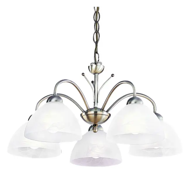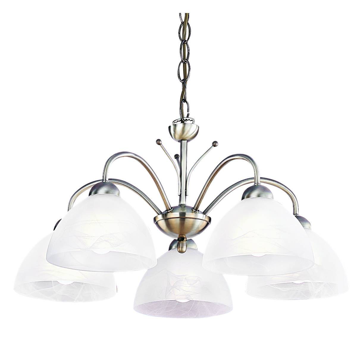 Searchlight Milanese Stropna svetilka s 5 lučmi in več kraki, starinska medenina, steklo, E14