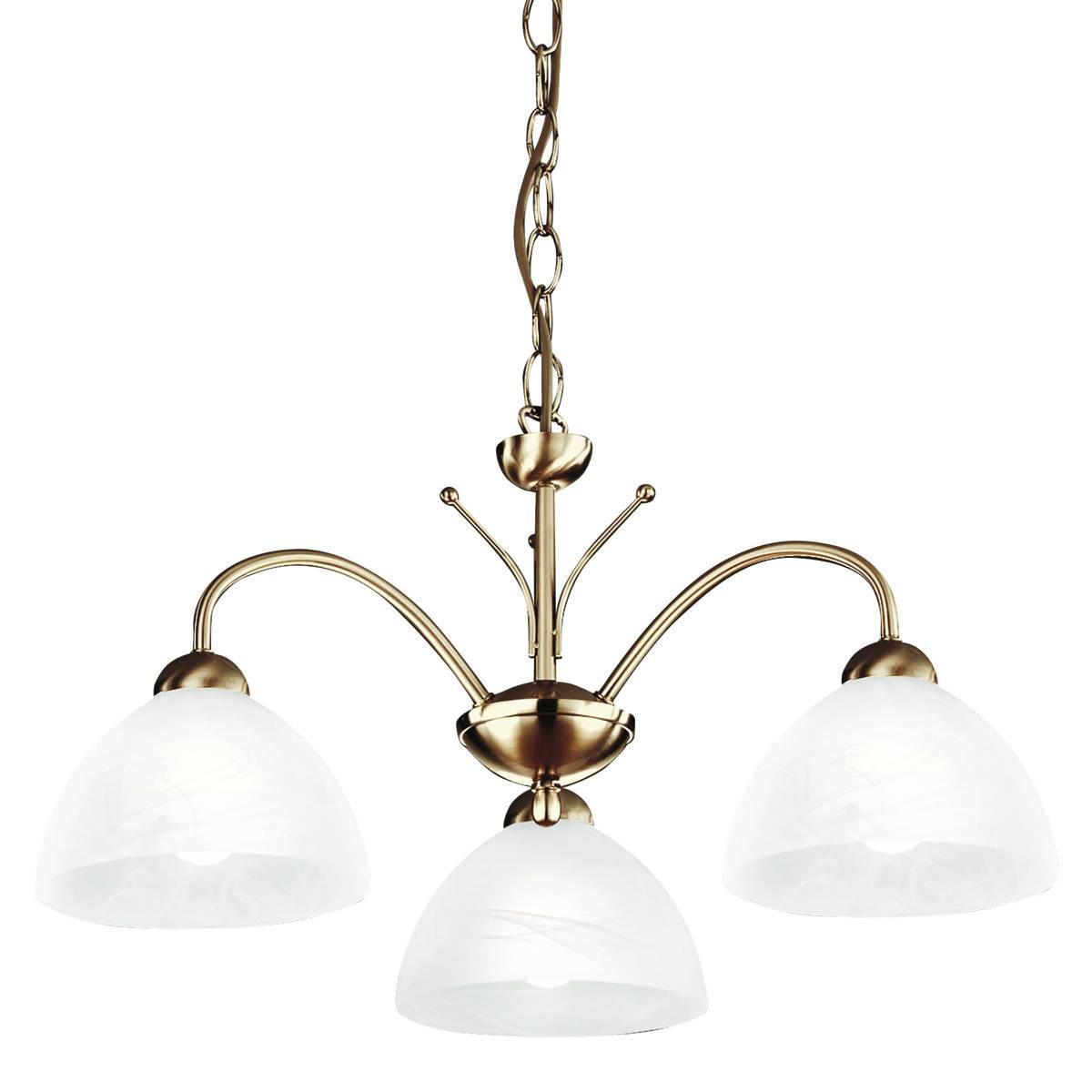 Searchlight Milanese Stropna svetilka s 3 lučmi in več kraki, starinska medenina, steklo, E14