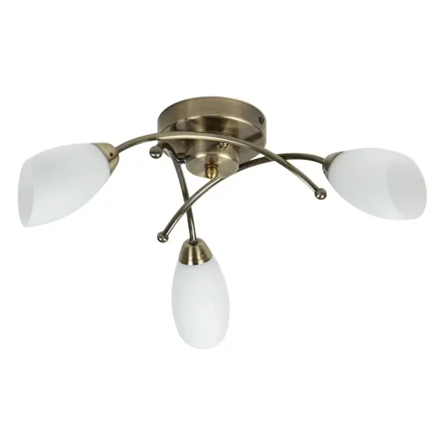 Searchlight Opera Stropna svetilka s 3 lučmi, vgradna, večkraka, antična medenina in opalno steklo, G9