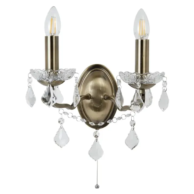 Searchlight Paris Stenska svetilka za notranjo uporabo s svečami, 2 lučkama, antična medenina, prozorna s kristalnim steklom, E14
