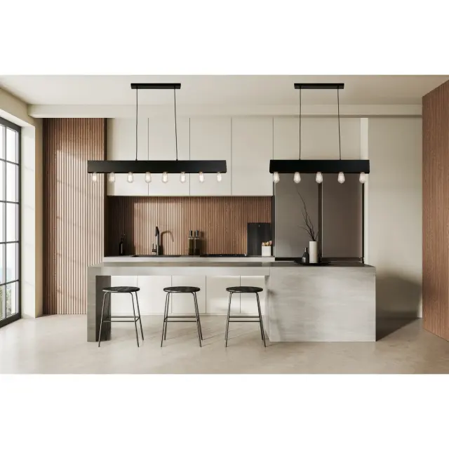 Searchlight Piano 8-lučni obesek za bar Diner, mat črne barve, kovinski