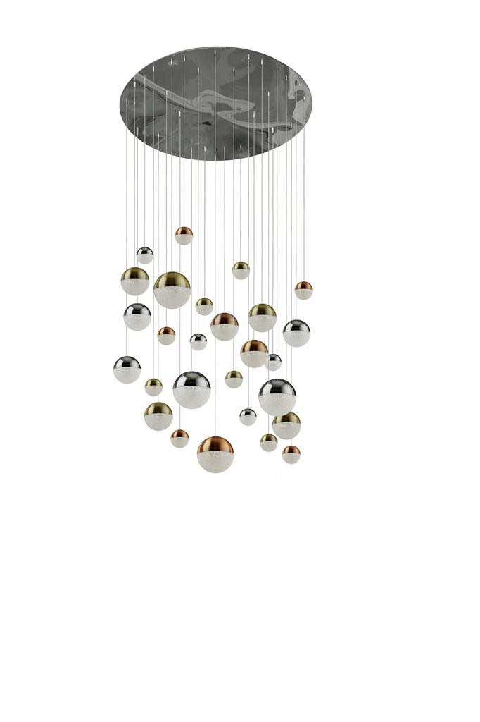 Searchlight Planets 27 svetlih bakrenih, kromiranih, satenasto medeninastih pokrovčkov in kristalnega peska 4000K