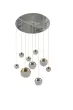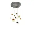 Searchlight Planets Stropna svetilka z 9 lučmi, baker, krom, pokrovčki iz satenaste medenine in kristalni pesek