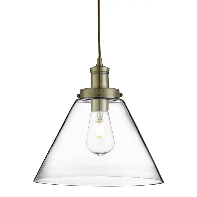 Searchlight Pyramid 1 viseča svetilka s kupolo, starinska medenina, s prozornim steklenim senčnikom, E27