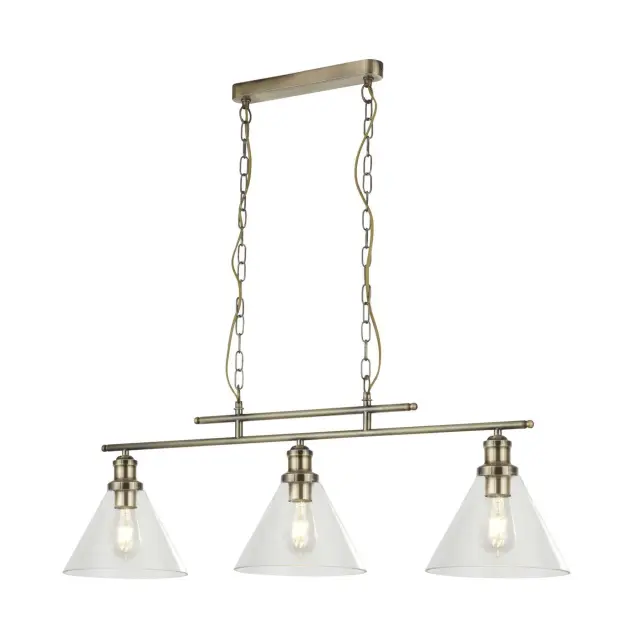 Searchlight Pyramid Viseča svetilka s 3 lučmi, starinska medenina, stekleni senčnik, E27