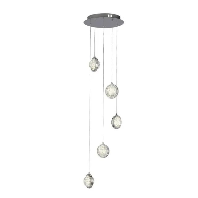 Searchlight Quartz Obesek s 5 lahkimi kapljicami, mehurčasto steklo, podroben rob 4000K