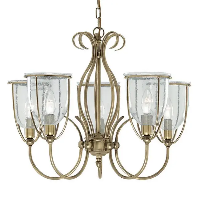 Searchlight Silhouette Stropna svetilka s 5 lučmi in več kraki, starinska medenina, z matiranimi steklenimi senčniki, E14