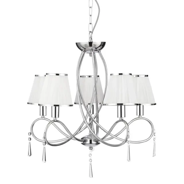 Searchlight Simplicity Stropna svetilka s 5 lučmi in več kraki, kromirana, kristali s senčniki, E14