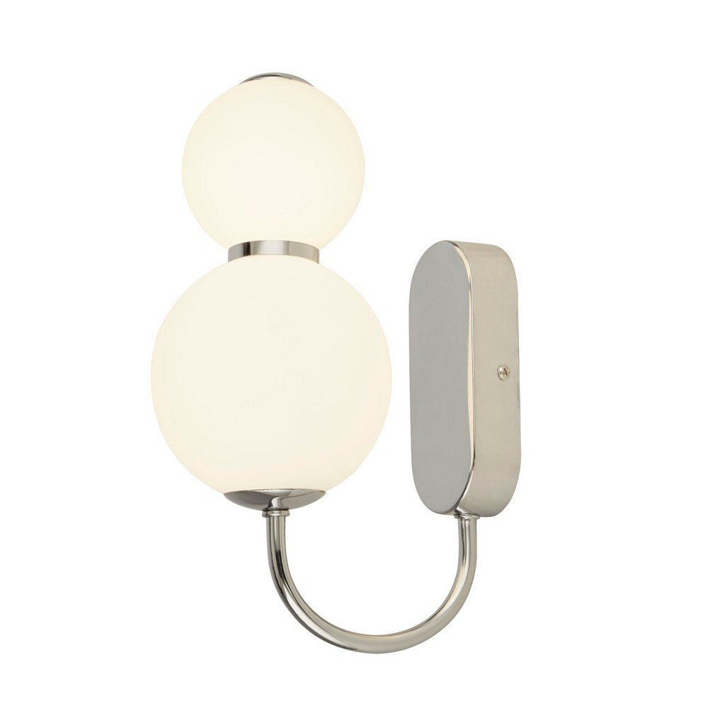 Searchlight Snowball Stenska svetilka z 2 lučema, kromirana z opalnim steklenim senčnikom