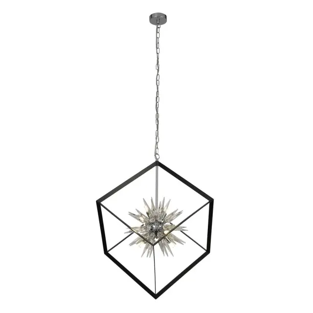 Searchlight Stellar Obesek s 6 lahkimi bodicami in kroglicami, mat črn okvir, kristalno steklo