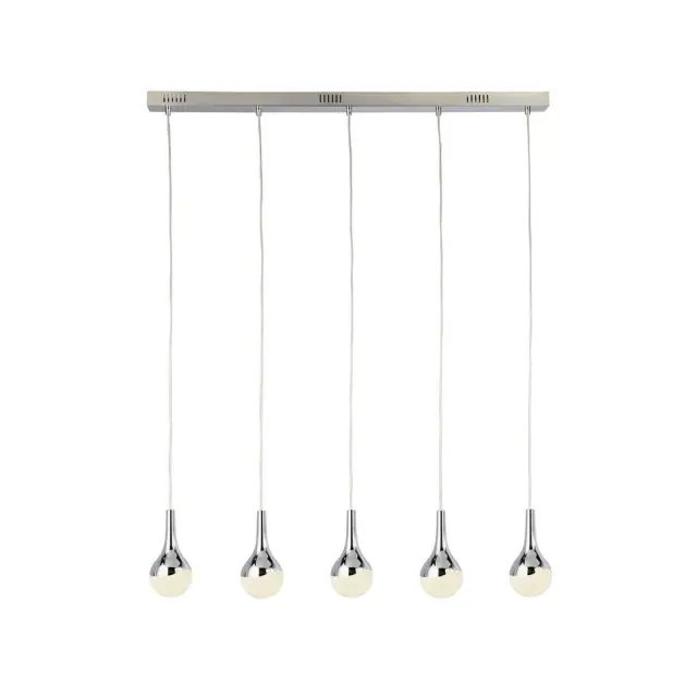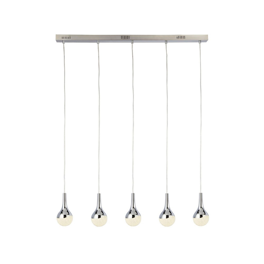 Searchlight Wave Viseča LED svetilka s 5 lučmi v obliki solze, senčnik z učinkom zdrobljenega ledu, krom