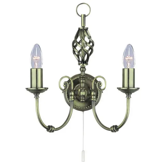 Searchlight Zanzibar Stenska svetilka za notranjo uporabo, 2 sveči, antična medenina, E14