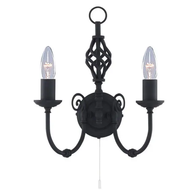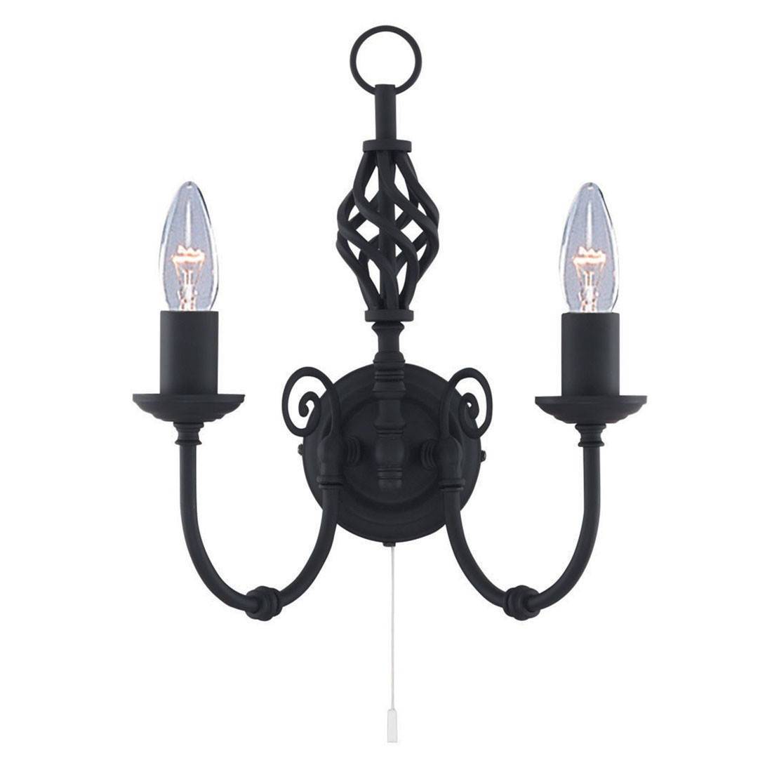 Searchlight Zanzibar Stenska svetilka s svečo, 2 žarnici, črna, E14
