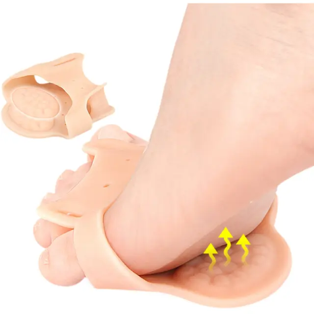 Vsestransko lajšanje bolečin: Ta vsestranski ločevalnik prstov na nogi ne ločuje samo prstov, ampak zagotavlja tudi ciljno lajšanje bolečin v stopalih. Zadebeljena stopalna blazinica blaži metatarzalno področje in lajša bolečine, ki jih povzroča metatarzalgija, medtem ko celotna zasnova zmanjšuje pritisk na bunione in kladivaste prste.