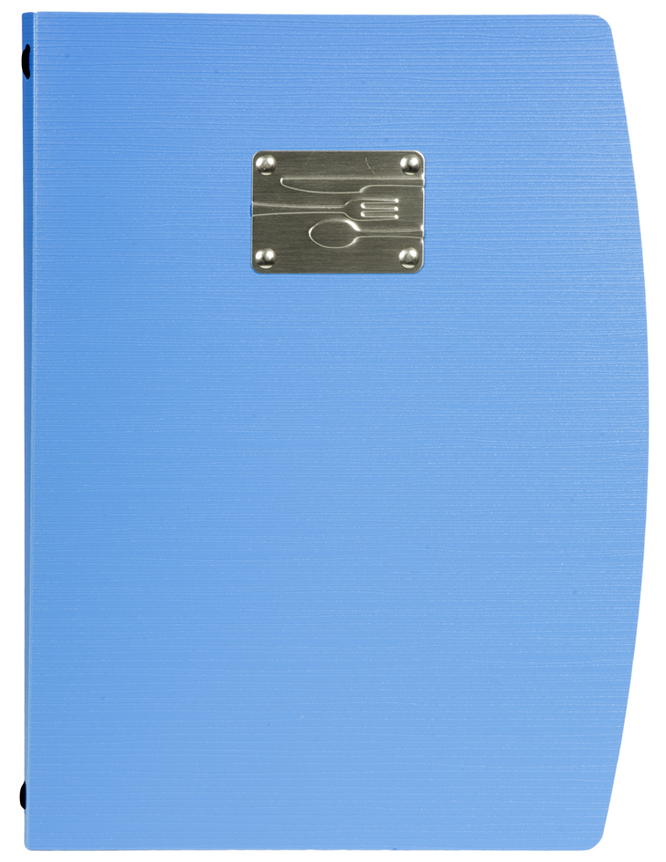 Mapa iz umetne mase, sprednja stran z vtisnjenim napisom MENU na nerjaveči plošči, upogljiva mapa, vključno z 1 dvostransko, prozorno zaščitno prevleko za 4 strani, mere: (Š)250 x (V)340 mm (MCRCA4BUFK) Pomembni podatki: Različica: PlasticForma