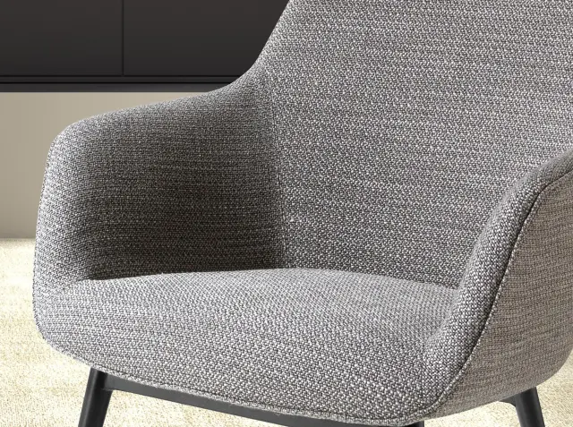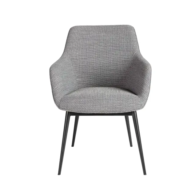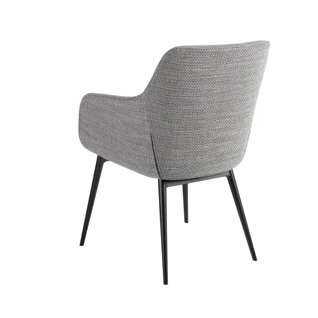 Sodoben stol z naslonjalom za roke, sedežem in naslonjalom, oblazinjenim s sivo tkanino. Njene noge iz nerjavečega jekla, pobarvane v črni epoksi barvi, v avantgardnem in hkrati brezčasnem slogu, bodo ta stol naredile za nepogrešljivega v vaši kuhinji ali jedilnici. Ta stol znamke Angel Cerdá združuje edinstven in oseben slog blagovne znamke ter največje udobje in stabilnost, zahvaljujoč visokokakovostni oblazinjenosti in izvirni strukturi nog.