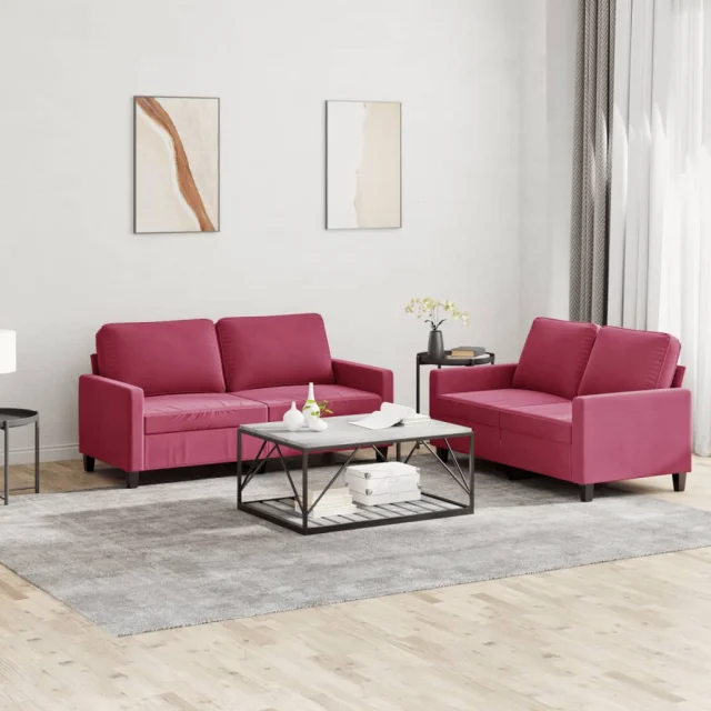Sedežna garnitura - kavč 2-delna z blazinami vinsko rdeč žamet