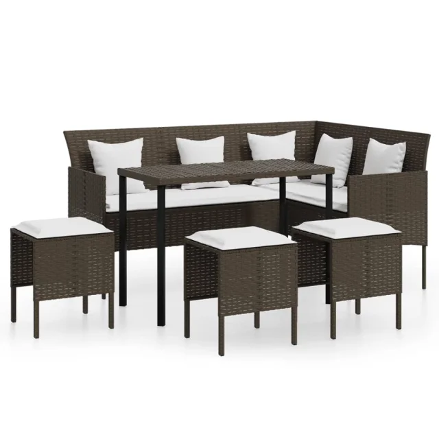 Sedežna garnitura - kavč 5-delna z blazinami poli ratan rjava