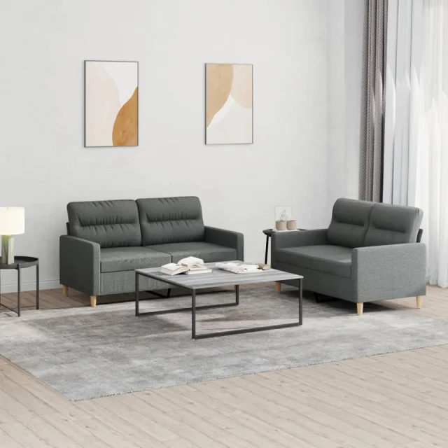 Sedežna garnitura - kavč z blazinami 2-delna temno sivo blago