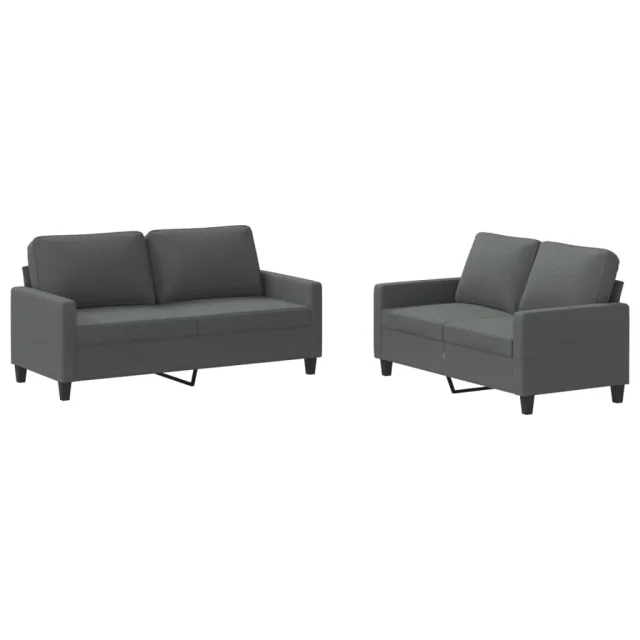 Sedežna garnitura - kavč z blazinami 2-delna temno sivo blago