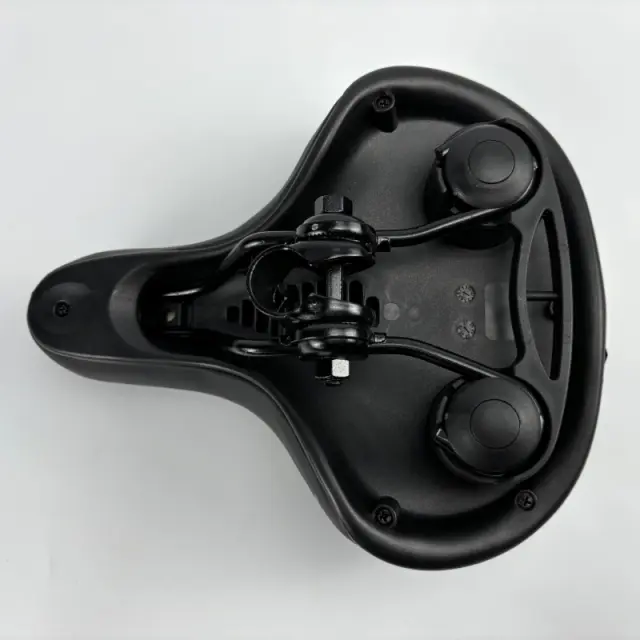 Učinkovito blaženje udarcev: To sedlo z vgrajeno plastično vzmetjo za blaženje udarcev učinkovito duši tresljaje in udarce na neravnem terenu ter zagotavlja bolj gladko in prijetnejšo izkušnjo vožnje. To je še posebej koristno pri gorskem kolesarjenju, kjer so lahko poti neravne in zahtevne.