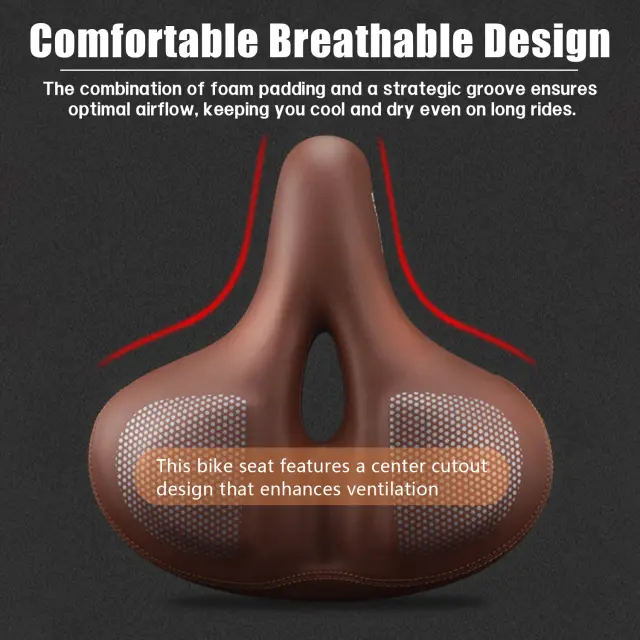Udobna in zračna zasnova: ta kolesarski sedež ima izrez v sredini, ki izboljša prezračevanje in zmanjša pritisk na občutljiva področja. Kombinacija penaste podloge in strateškega utora zagotavlja optimalen pretok zraka in vas hladi tudi na dolgih vožnjah.