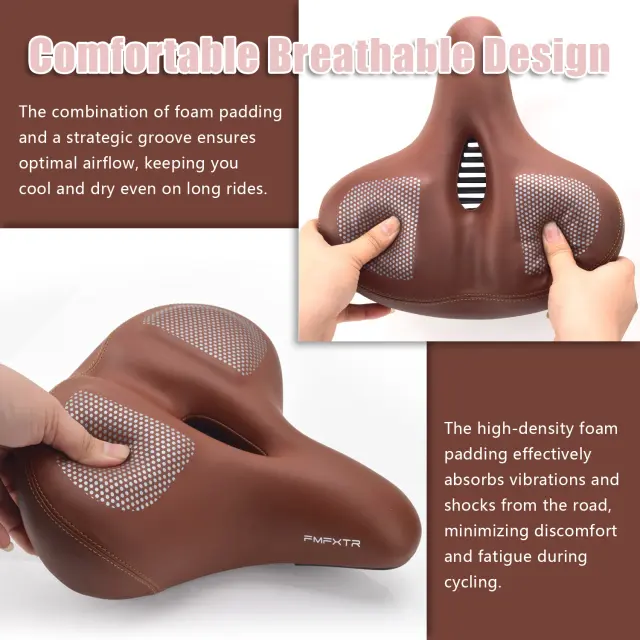 Udobje za blaženje udarcev: Izkusite bolj gladko vožnjo z zasnovo tega sedeža za blaženje udarcev. Oblazinjenje iz pene visoke gostote učinkovito absorbira tresljaje in udarce s ceste, kar zmanjšuje nelagodje in utrujenost med kolesarjenjem.