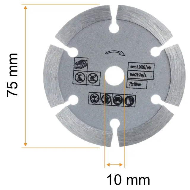 Rosfix Diamantni Rezilni Disk 75 mm – Za Gradbene Materiale, Suho Rezanje | Ø75x10 mm, 1,2 mm, Lasersko Varjen