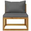 Sredinski sedež iz trdnega akacijevega lesa je močan, trden in trpežen. Oljni premaz zagotavlja, da je kavč primeren za uporabo na prostem. Podložena sedežna in hrbtna blazina prispevata k izjemnemu udobju med sedenjem.