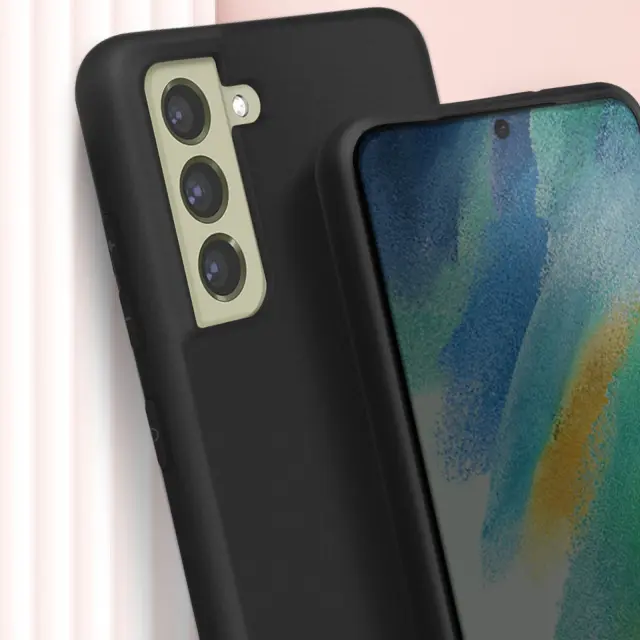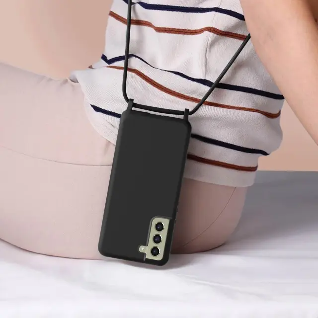 Samsung Galaxy S21 FE crn ovitek s kablom iz serije Corda. Galaxy S21 FE etui iz dvojnega materiala Polikarbonat in silikonski gel. Zašcita Samsung S21 FE Najlonski pleten trak Nastavljiv 80 cm, ovratni trak ali naramnica.