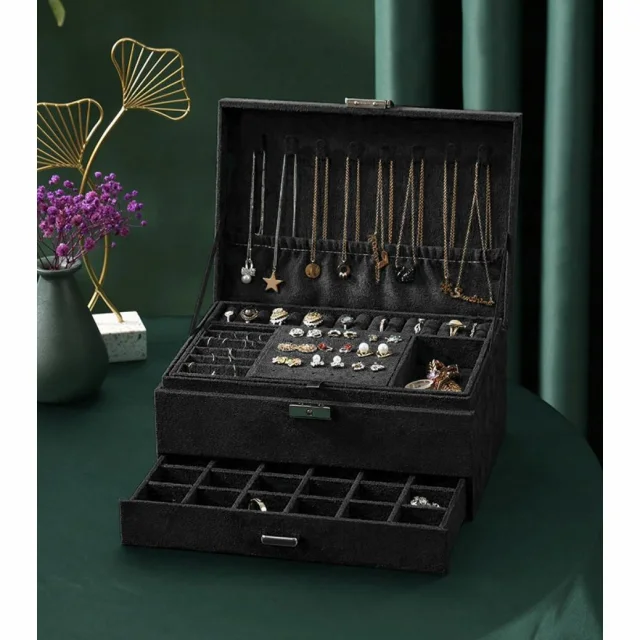 Semiš kovček in organizator za nakit črn
