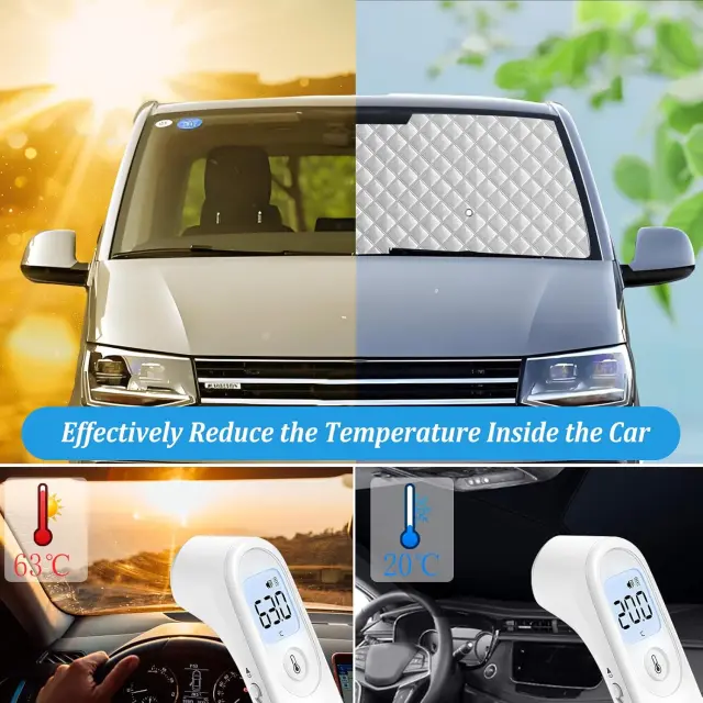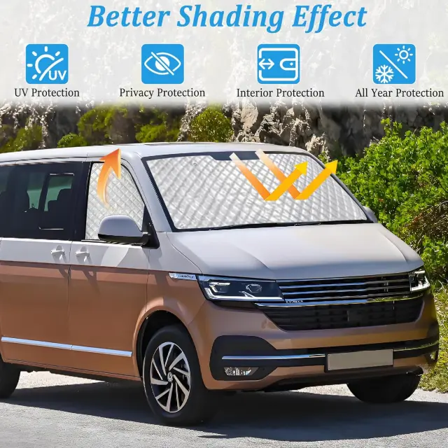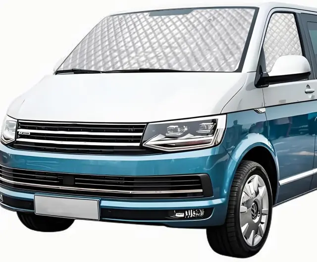 Senčnik za vetrobransko steklo za vozili VW T5 in T6 predstavlja zanesljivo rešitev za zaščito voznikove kabine pred sončnim obsevanjem in vročino. Izdelek je zasnovan za vsakodnevno uporabo, kjer s pomočjo šestih izolacijskih plasti in posebnega premaza učinkovito odbija UV-žarke ter preprečuje segrevanje notranjosti. Njegova robustna konstrukcija zagotavlja dolgotrajno odpornost na obrabo, hkrati pa omogoča enostavno rokovanje pri pripravi vozila na parkiranje ali vožnjo. Namestitev je prilagojena specifičnim dimenzijam omenjenih modelov vozil, kar zagotavlja optimalno prekritost steklenih površin.